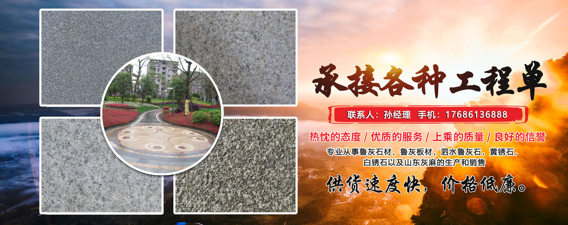 本廠(chǎng)專(zhuān)業(yè)從事魯灰石材,魯灰板材,泗水魯灰石,黃銹石,白銹石以及山東灰麻的生產(chǎn)和銷(xiāo)售