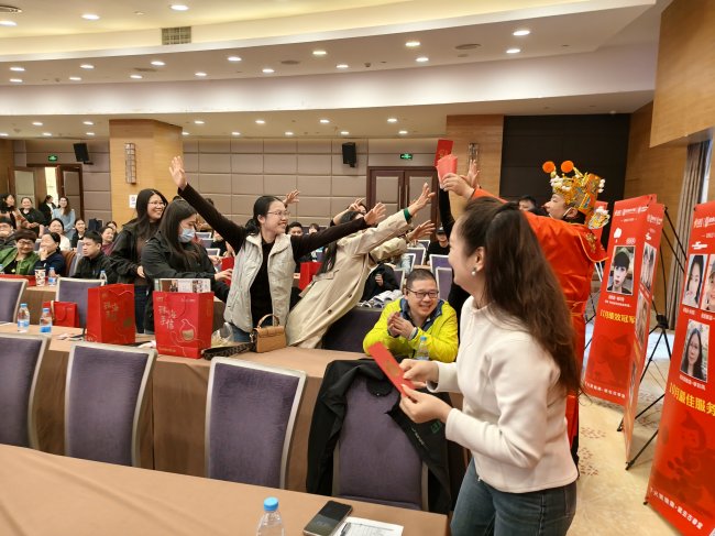 為致敬一線耕耘者、激勵(lì)全員奮進(jìn),古春堂精心籌備了此次表彰大會(huì),通過(guò)多元形式致敬一線貢獻(xiàn)者。大會(huì)特別設(shè)置財(cái)神送福互動(dòng)環(huán)節(jié),身著傳統(tǒng)服飾的財(cái)神人偶與員工親切互動(dòng),派發(fā)寓意吉祥的新春福袋。同時(shí)穿插多輪驚喜抽獎(jiǎng),讓每位參與者都感受到品牌的關(guān)懷與祝福。在熱烈氛圍中,受表彰的同仁依次登臺(tái)接受榮譽(yù),他們的奮斗故事引發(fā)全場(chǎng)共鳴,臺(tái)下持續(xù)的掌聲既是對(duì)過(guò)往付出的致敬,更是對(duì)未來(lái)征程的期許。這些基層耕耘者用堅(jiān)守詮釋初心,為全體古春堂人樹(shù)立了實(shí)干標(biāo)桿,激勵(lì)著團(tuán)隊(duì)以更昂揚(yáng)的姿態(tài)投身品牌發(fā)展。